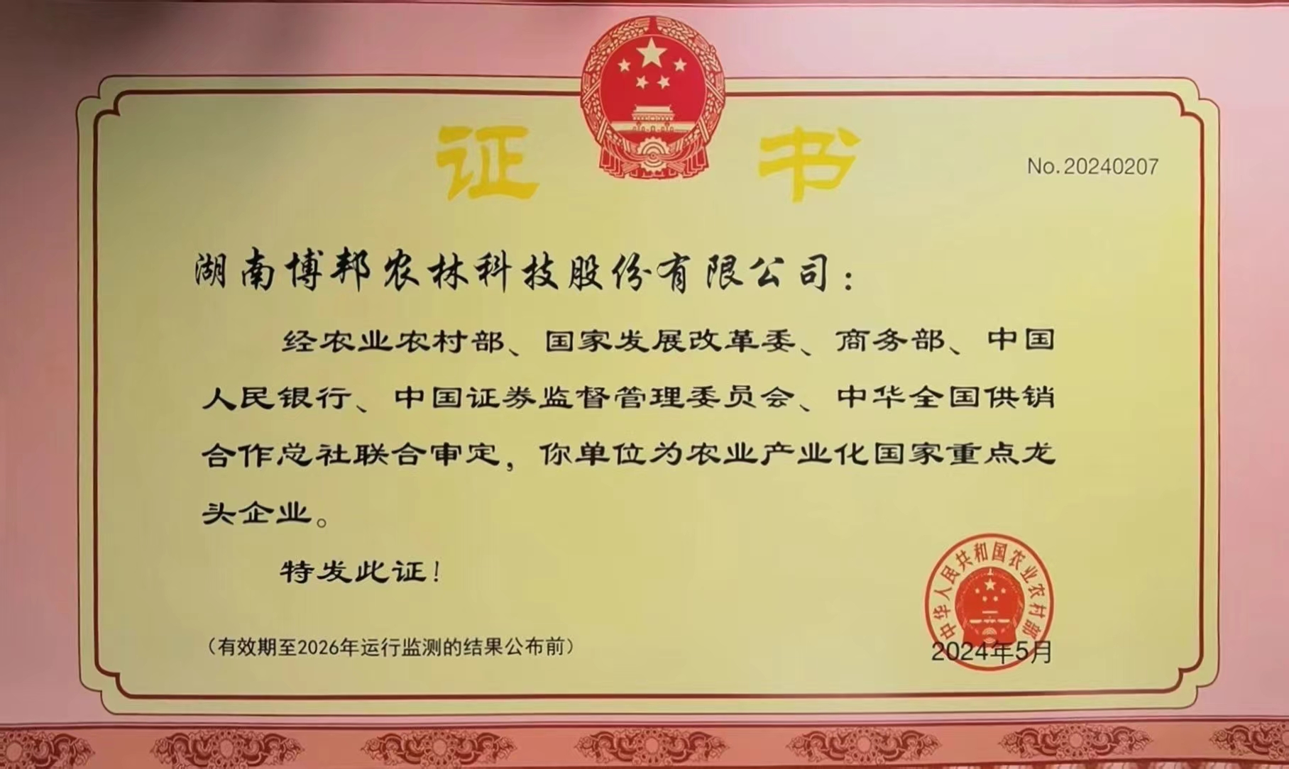2024年5月,經農業(yè)農村部、國家發(fā)展改革委、商務部、中國人民銀行、中國證券監(jiān)督管理委員會...